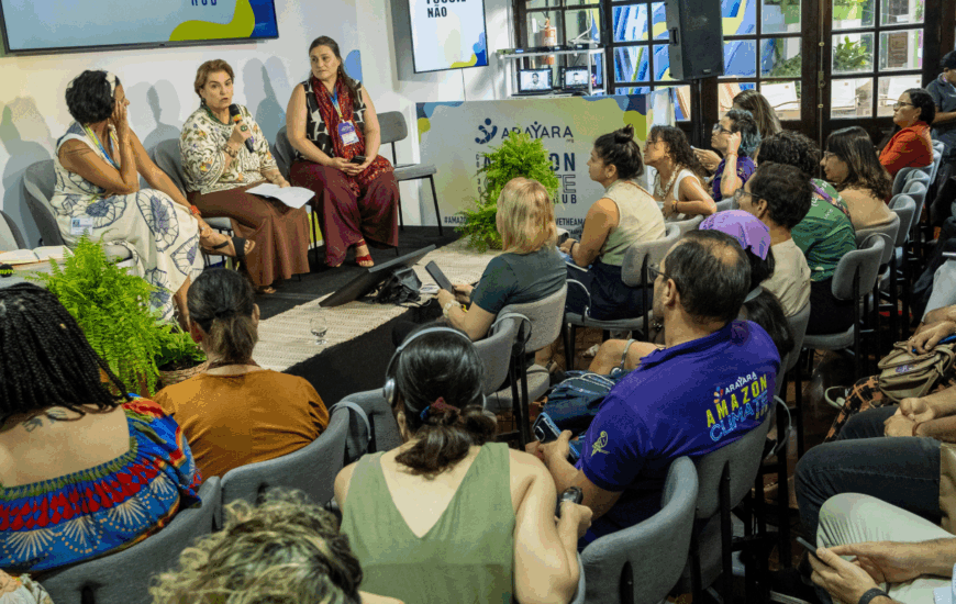No dia 14 de novembro, às 14h, o Arayara Amazon Climate Hub sediará a mesa-redonda “Territórios indí…