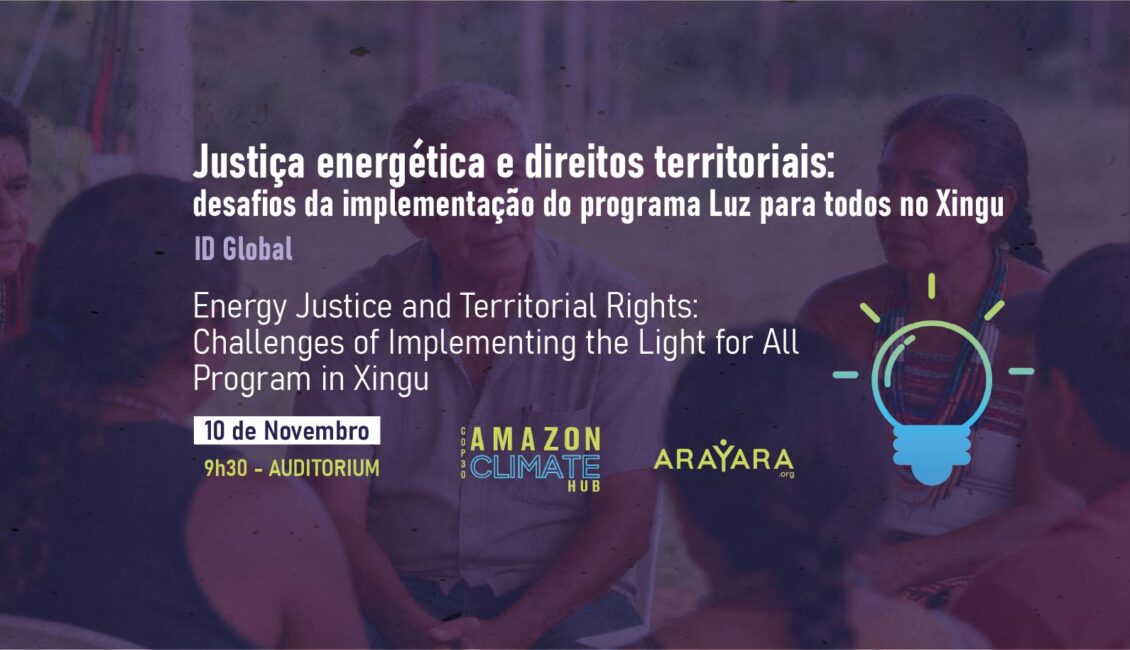 O evento marca a divulgação do relatório técnico e do policy brief elaborados pelo IDGlobal, com apoio da Rede Energia e Comunidades (REC), sobre a implementação do Programa Luz para Todos em territórios indígenas no Xingu. A pesquisa sistematiza os problemas jurídicos enfrentados pelas comunidades diante do programa federal e analisa, sob perspectivas jurídica e técnica, os impactos da expansão da infraestrutura elétrica em seus territórios. O estudo identifica falhas operacionais, normativas e institucionais que comprometem o acesso contínuo, adequado e respeitoso aos direitos dos povos indígenas à energia elétrica. A atividade será coordenada por Júlia Soares, pesquisadora do IDGlobal com formação em Direito, e contará com a participação de lideranças do Xingu, representantes de organizações da sociedade civil e, se possível, integrantes da Rede Energia e Comunidades.