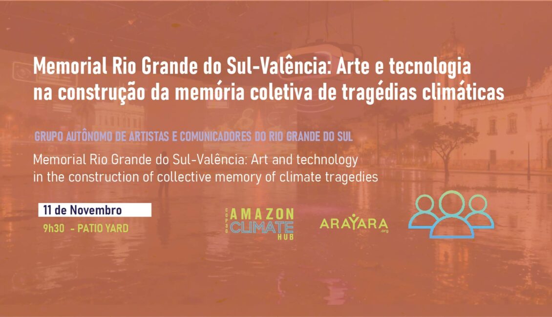 Em maio de 2024, o Rio Grande do Sul viveu sua maior tragédia climática: chuvas afetaram 478 dos 497 municípios, impactando 2,4 milhões de pessoas e deixando cidades, como Porto Alegre, submersas. Do outro lado do Atlântico, em outubro, Valência sofreu chuvas extremas em poucas horas, resultando em cerca de 230 mortes, a maior catástrofe contemporânea da Espanha. Desde então, profissionais de comunicação, artes e tecnologia criativa produziram obras para expressar vivências, preservar a memória coletiva e dar visibilidade à crise climática e aos que ainda precisam de apoio para se recuperar. Esses acontecimentos, conectados, mostram que esses fatos não são isolados, mas um problema global que exige resposta imediata. Nossa proposta apresenta um memorial artístico e tecnológico, conectando RS e Valência, com fotografias, vídeos, projeção mapeada, relatos e experiências em realidade virtual, sensibilizando sobre os impactos da crise climática e a importância da memória para prevenir futuras tragédias.