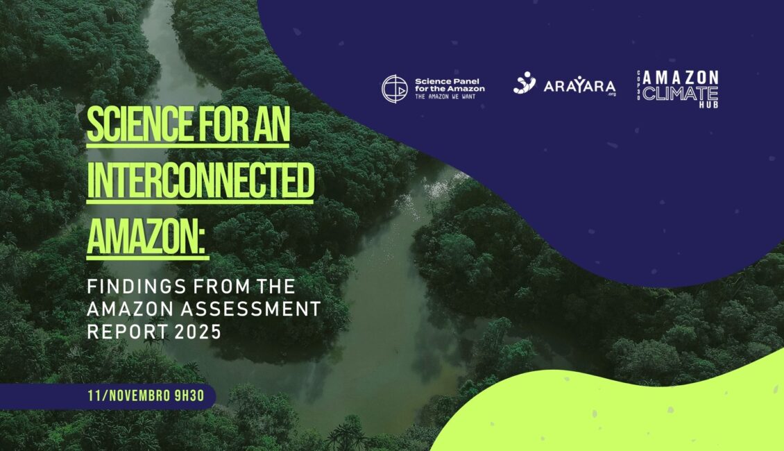Durante a COP30, em Belém (PA), o ARAYARA Amazon Climate Hub sediará o evento Science for an Interconnected Amazon: Findings from the Amazon Assessment Report 2025, marcado para o dia 11 de novembro, às 9h30. A atividade marca o lançamento oficial do Segundo Relatório de Avaliação da Amazônia (AR2025), elaborado pelo Science Panel for the Amazon (SPA), uma iniciativa que reúne cientistas, povos indígenas, comunidades locais e instituições parceiras de toda a Pan-Amazônia.