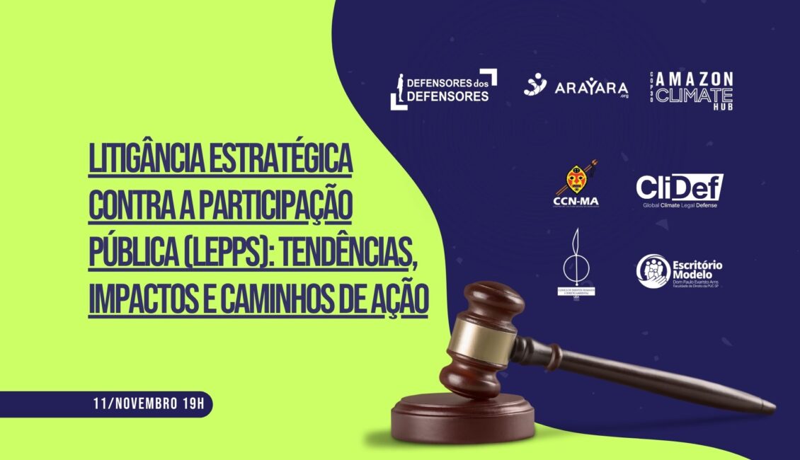 Com o tema “Litigância Estratégica contra a Participação Pública (LEPPs): tendências, impactos e caminhos de ação”, o encontro busca dar visibilidade aos casos de criminalização e assédio judicial enfrentados por povos indígenas, quilombolas, comunidades tradicionais e ativistas socioambientais da Amazônia e da América Latina.