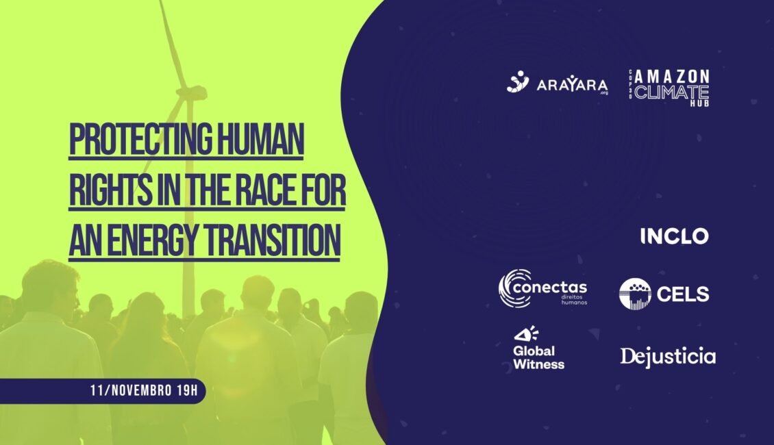 No dia 19/11, às 19h, o ARAYARA Amazon Climate Hub sediará o painel “Protecting Human Rights in the Race for an Energy Transition”, promovido pela International Network of Civil Liberties Organizations (INCLO). O evento reunirá especialistas e representantes da sociedade civil de seis países (Brasil, África do Sul, Argentina, Índia, Egito e Colômbia) para debater como garantir que a transição energética global ocorra com justiça social, respeito aos direitos humanos e proteção ambiental.