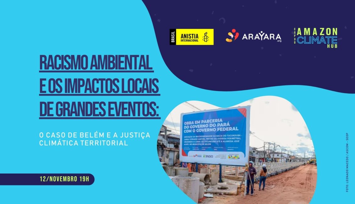 Serão apresentadas ainda documentações recentes da Anistia Internacional sobre direitos humanos no Brasil e o cenário da COP30, destacando os impactos das obras locais sobre a população vulnerável.